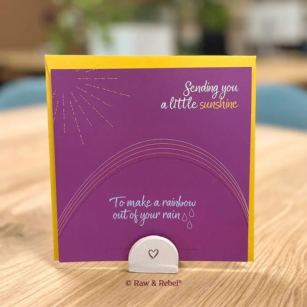 Kaartjes waarmee je een hart onder de riem stuurt in moeilijke tijden. Laat iemand weten dat je er voor ze bent, wens ze sterkte met te overwinnen bergen of stuur een zonnestraaltje.
